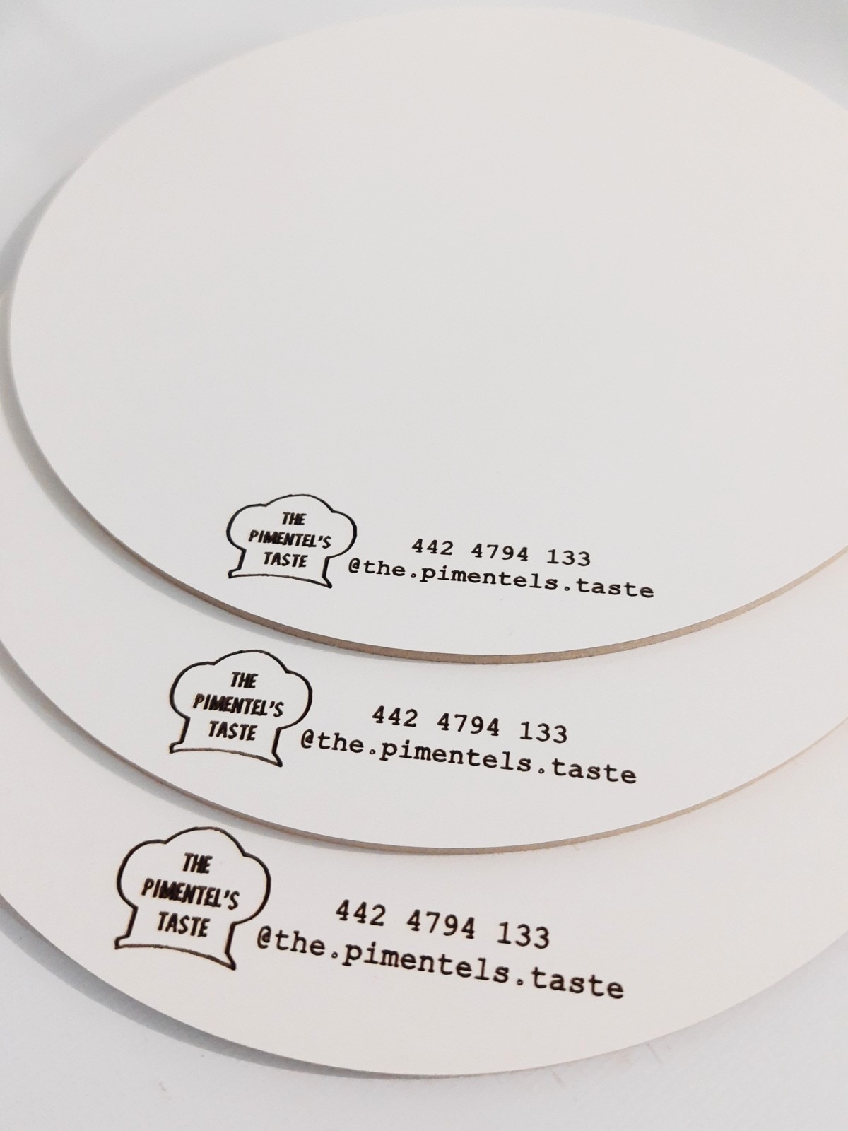 [Descripción corta del producto] Bases para pasteles de 3mm disponible en diámetros de 15, 20, 25, 30 y 35 centímetros. Personaliza la base con tu logo, lo podrás subir al hacer tu pedido.