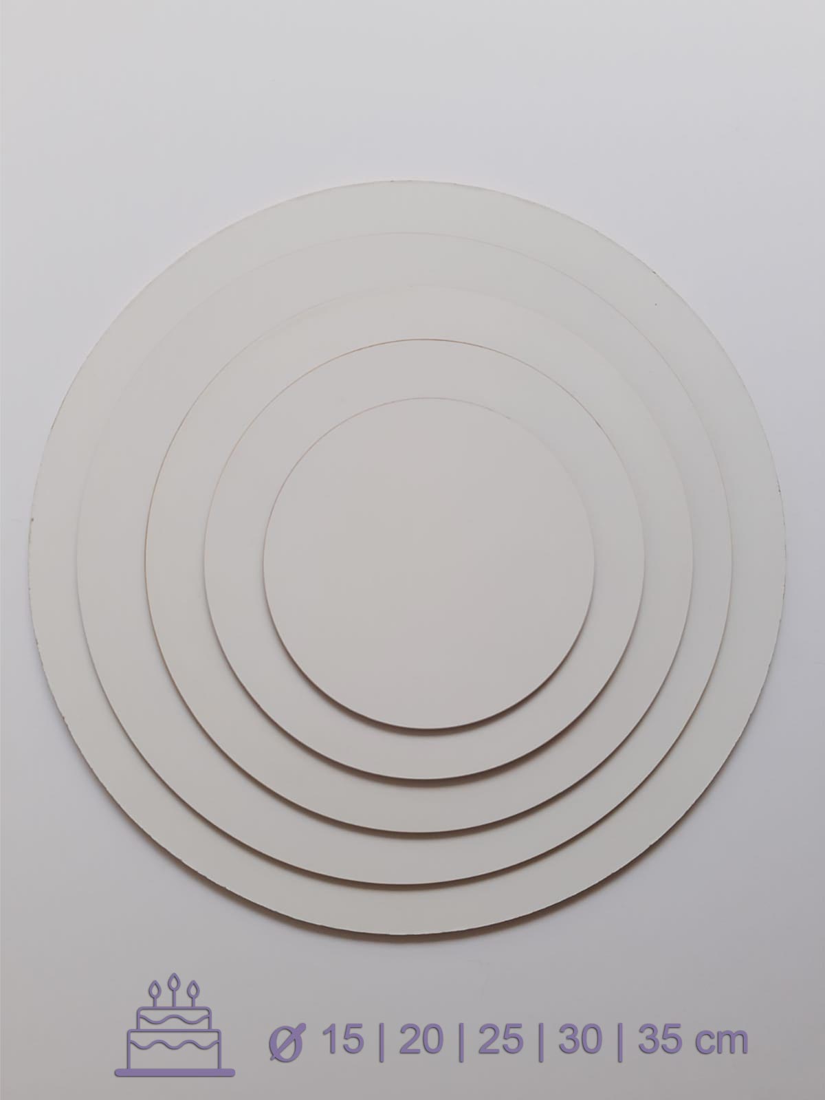 [Descripción corta del producto] Bases para pasteles de 3mm disponible en diámetros de 15, 20, 25, 30 y 35 centímetros.